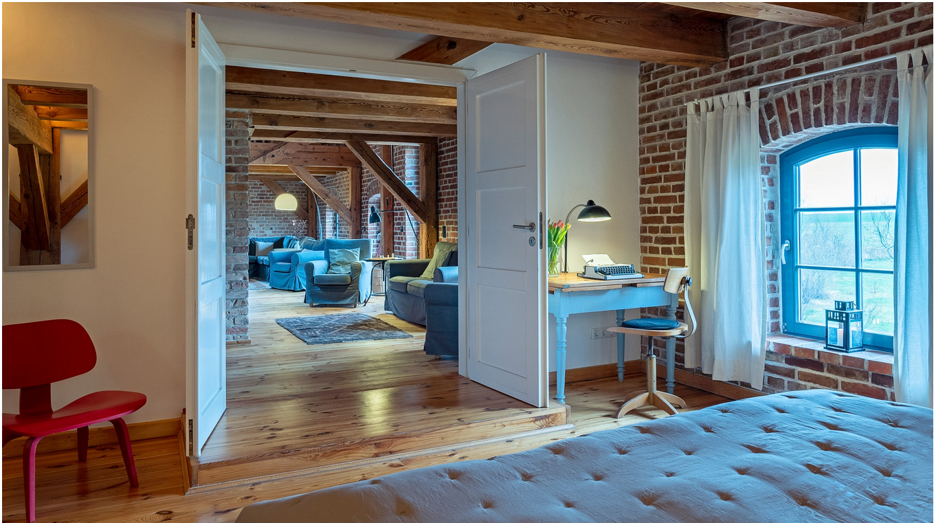 Im Südosten der Sonneninsel Rügen liegt das Örtchen Zicker. Hier steht der Kornspeicher Mauritz. In dem ehemaligen Speicher befinden sich vier Wohnungen, die auf besondere Weise Gemütlichkeit und Design miteinander verbinden.
